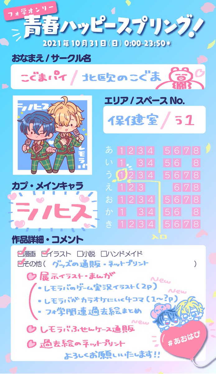 サークル参加します!#しひ恋1219 【イベント】シノヒス♀webオンリー「四六時中君の瞳に恋してる」 pictsquare.net/467tsg1lea8dmw… いつか出したい本の途中経過や過去絵の展示を予定しています😼🎀よろしくお願いします!