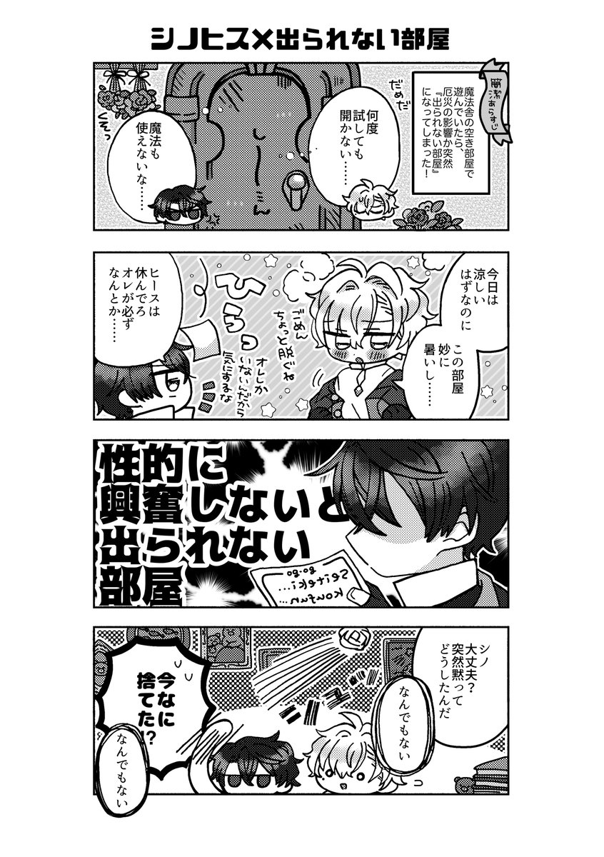 【8/29御意フェス2021夏】シノヒス新刊サンプル pixiv.net/artworks/92537… パラロイのシノヒス4コマ本です🔧🐾 9/19の賢マナでも(間に合えば)頒布予定です! #御意フェス2021夏_アフター