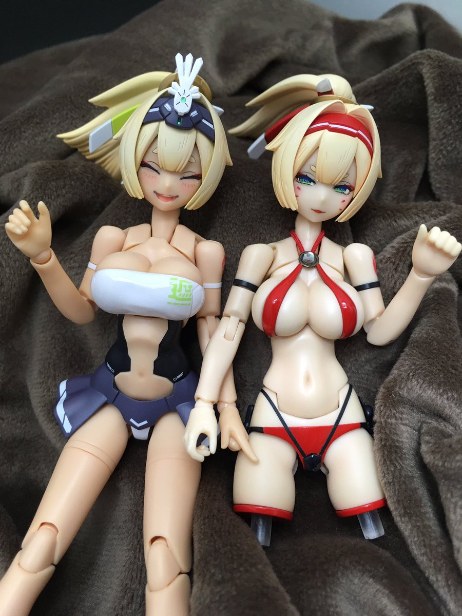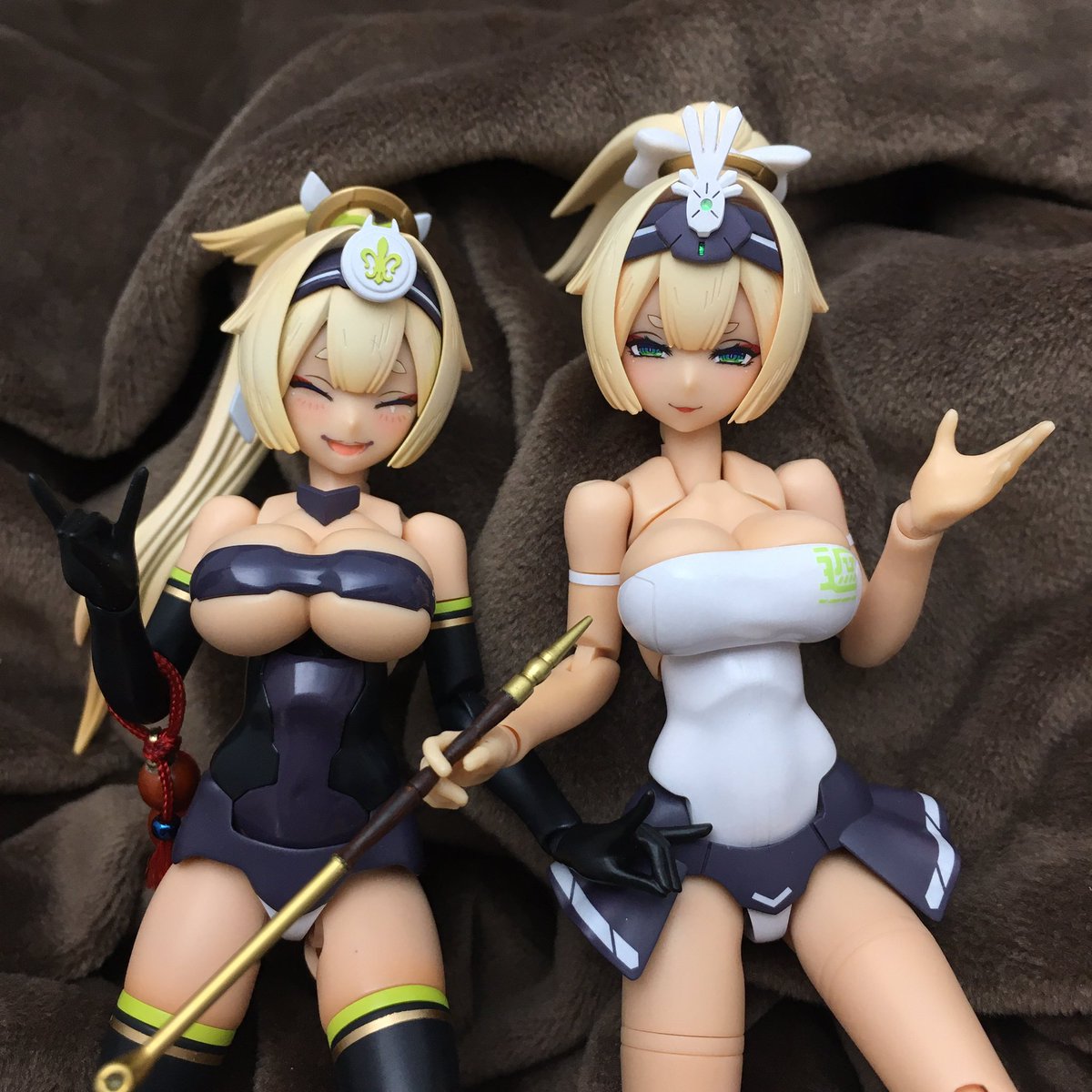 1 9 #メガミデバイス 予備部品で玉藻にトップスセットとボトムスセットを組み込んだのを作ってみたら上半身が随分と短くなり体型の変化が凄い。2枚目は腹部を白のに変えた夏服ぽい普通体型の玉藻1号。並べると身長に差が出で姉妹のよう。 22/04/03 18:36