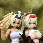 #メガミデバイス 予備部品で玉藻にトップスセットとボトムスセットを組み込んだのを作ってみたら上半身が随分と短くなり体型の変化が凄い。2枚目は腹部を白のに変えた夏服ぽい普通体型の玉藻1号。並べると身長に差が出で姉妹のよう。