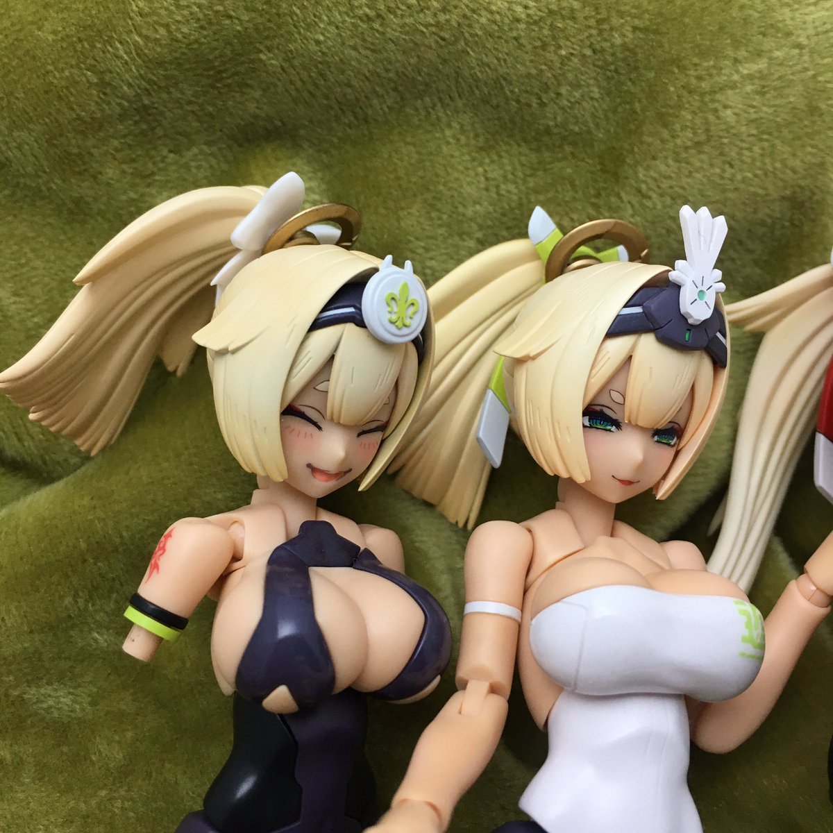 #メガミデバイス 写真がうんちなので色の差が解りにくいかと思いますが、スキンカラーAとBの違いはこんな感じです。ダークエルフとハイエルフにしたかったんだけれどあんまし変わらないね😶