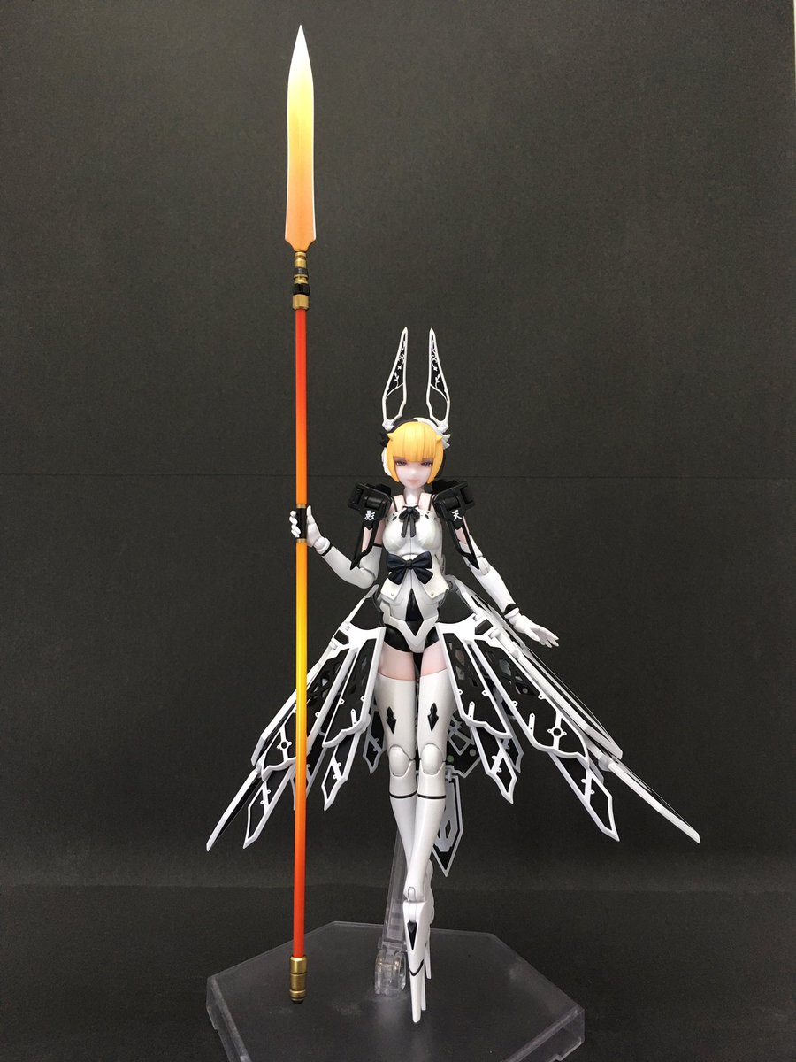 立たせて撮影してみた。プラチナムさんは女神?天使?なオーラが出てるから家に置いとくと災いから守ってくれそうな気がする。 #チトセリウム #メガミデバイス
