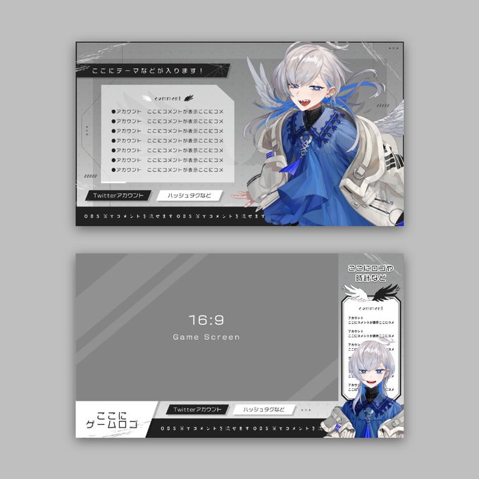 #第4回配信素材制作リレー 【モノトーン×天使×ワルさ】のお題で制作いたしました! 👼フォロー&RTで無償でご使用いただけます😈 poyo-yuru.booth.pm/items/4472342 100RTで天使ver(白ベース)、200RTで堕天使ver(黒ベース)を頒布します!✨ #VTuber素材 #VTuberAssets ①