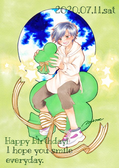 はっぴーばーすでー!!!💜💛💚 頼れる仲間と幸せいっぱいの1年に してください!!!(´∩。• ᵕ •。∩`) #NEWSでお絵かき #加藤シゲアキ誕生祭 #加藤シゲアキ誕生日 #7月11日は加藤シゲアキの誕生日 #1年に一度の魔法特別な日 #コピック