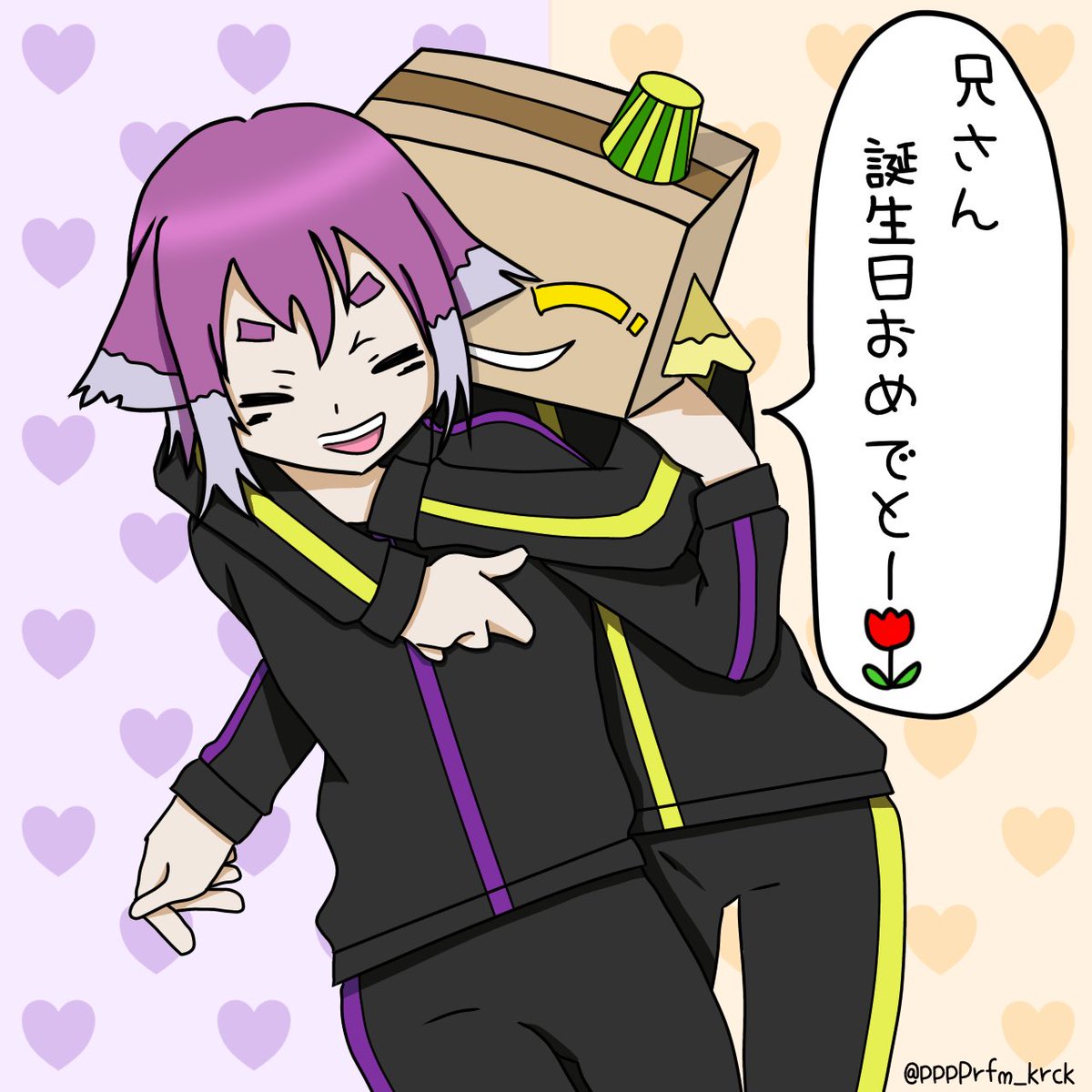 @bintrollZ お誕生日おめでとうございます🐶 ゲーム配信にハマったきっかけはしるこさんでした!もちろん今でも大好きです💜 身体にはお気をつけて、配信や動画頑張ってください☺ 今日くらいは!兄さんを!溺愛してほしい!! そんな気持ちで私なりの【兄を溺愛するはこたろー】です⸜🌷︎⸝ #bintrollFA