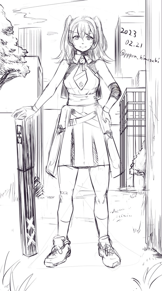 溜まってた個人的に気に入ってたラフを線画練習に使っていこう #イラスト #illustration