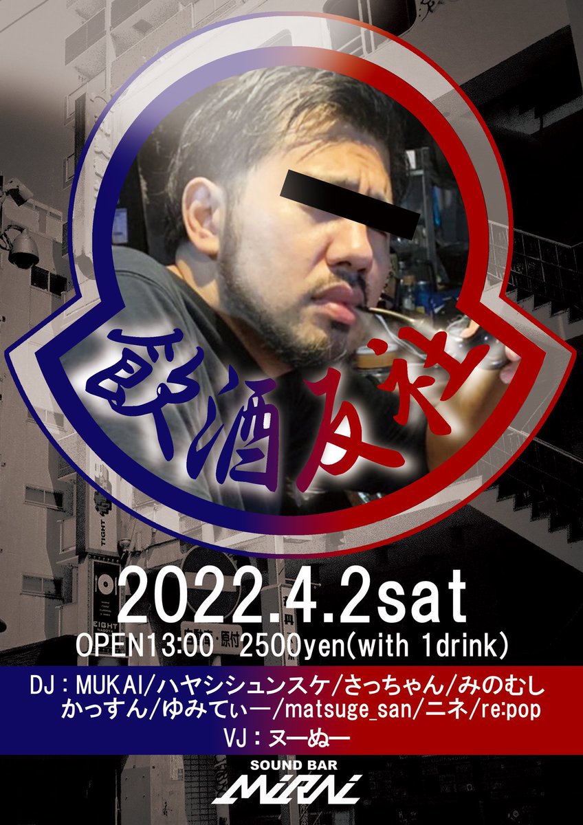 8 9 【告知です】今週末! #飲酒反社 出演させていただきます!! 🕐4/2 13時〜 🎪@MIRAI_sakae なんと、7ショット1000円という格安価格!これは乾杯するしかない✨ 沢山お酒飲めますね☺️🥃 お待ちしております✨ 22/03/31 14:30