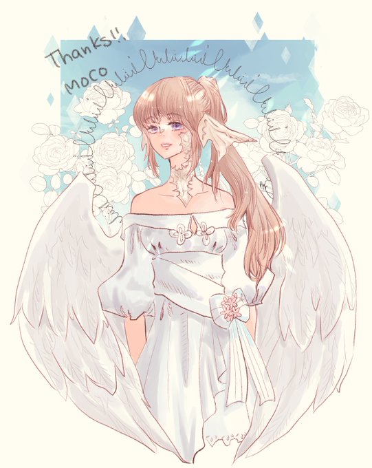 おぐずりマックスで当日は間に合わなかったけど描こうとずっと思ってたので遅刻だけどおめでとう!! 一番近い人だからこそ一番大事にしてあげてくださいね🕊💍 #FF14art #FF14イラスト twitter.com/roixxxxx/statu…