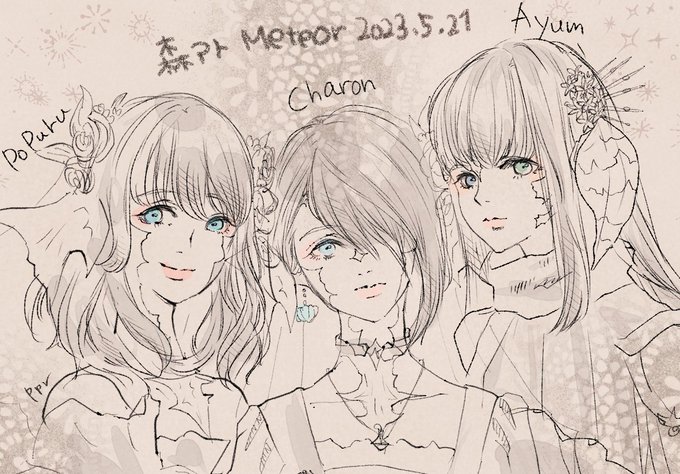 今日ちょっとゆっくりできた~~~!!嬉しい!!3人集合SS(盗撮)したので嬉しくて描きました♡ #森アト_Meteor #森アトスケッチ会 twitter.com/ppr_choco/stat…