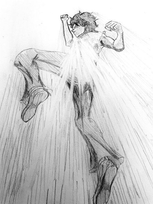 【93日目】平和の象徴❗️的なポーズ 太陽に照らされた少年は、暗闇を生み出す暗雲を蹴散らしてひた走る #イラスト好きな人と繋がりたい #漫画家志望さんと繋がりたい #イラスト日記 #平和の象徴的な #厨二病すいません🙇♂️