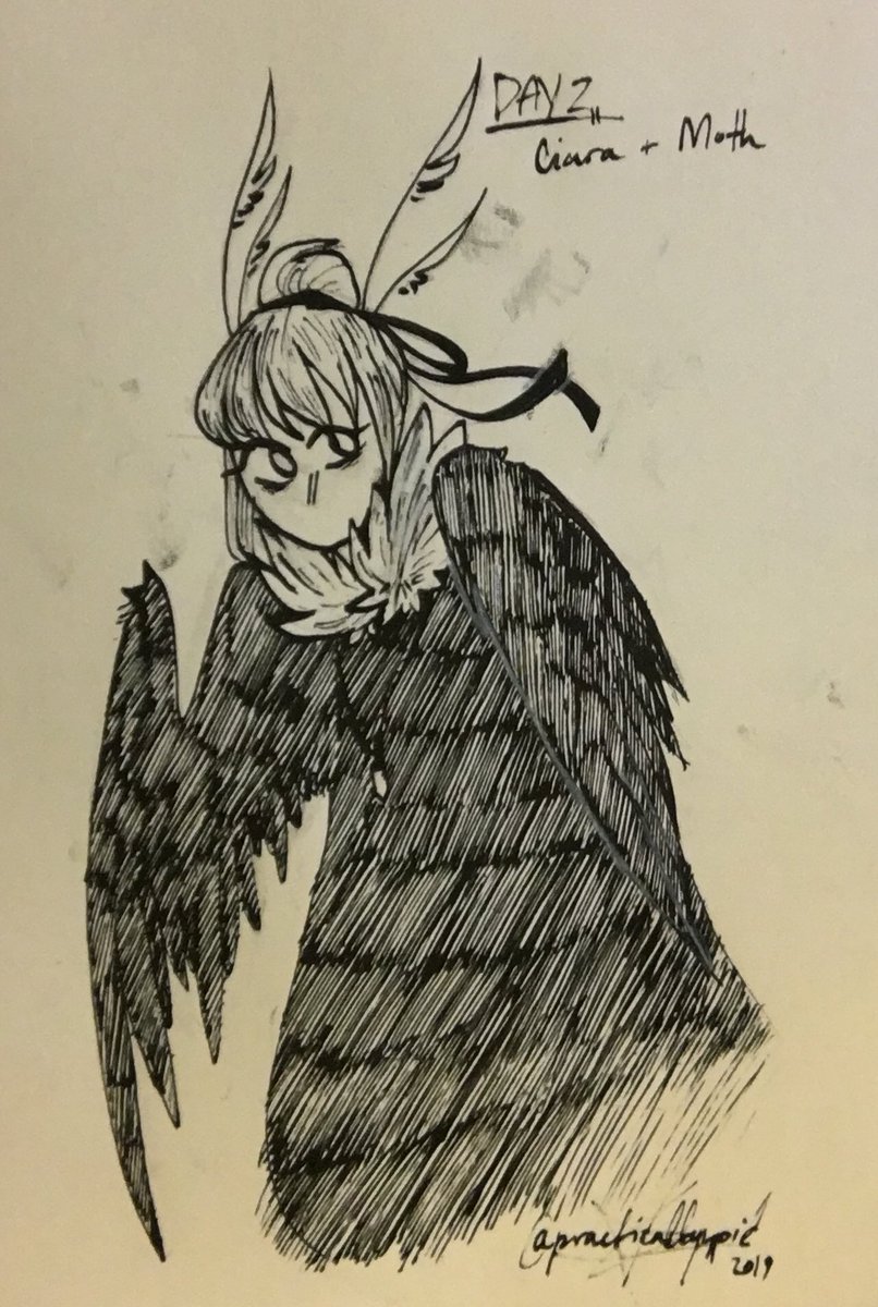 day 2: moth + ciara my lil moth gooorllll... also i havent used my ink pen in so long theres so many mistakes......hhhgnfbdbvj #Inktober2019