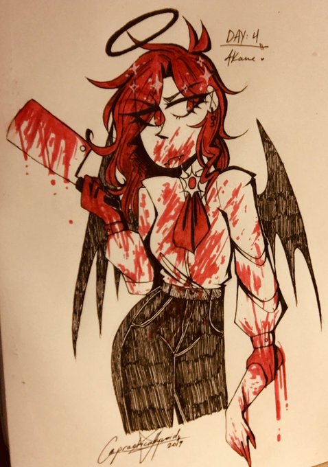 day 4: messy + akane lil vampire!akane drawing.......my ink pens has died so ive resorted to using my Generic School Pens TM #Inktober2019