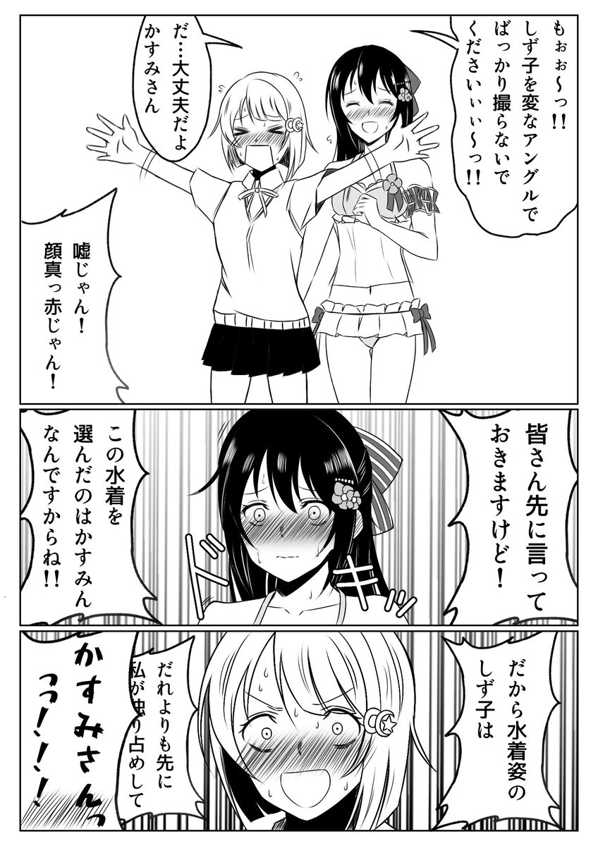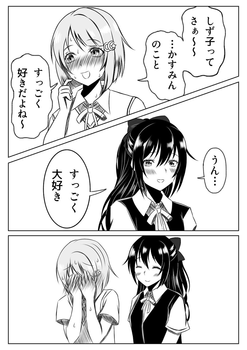 冬コミ新刊のサンプルです!しずかすです!💧👑 放課後同好会活動前に2人でコッペパンを食べてるかすみんとしずくちゃんのお話です。 #C101
