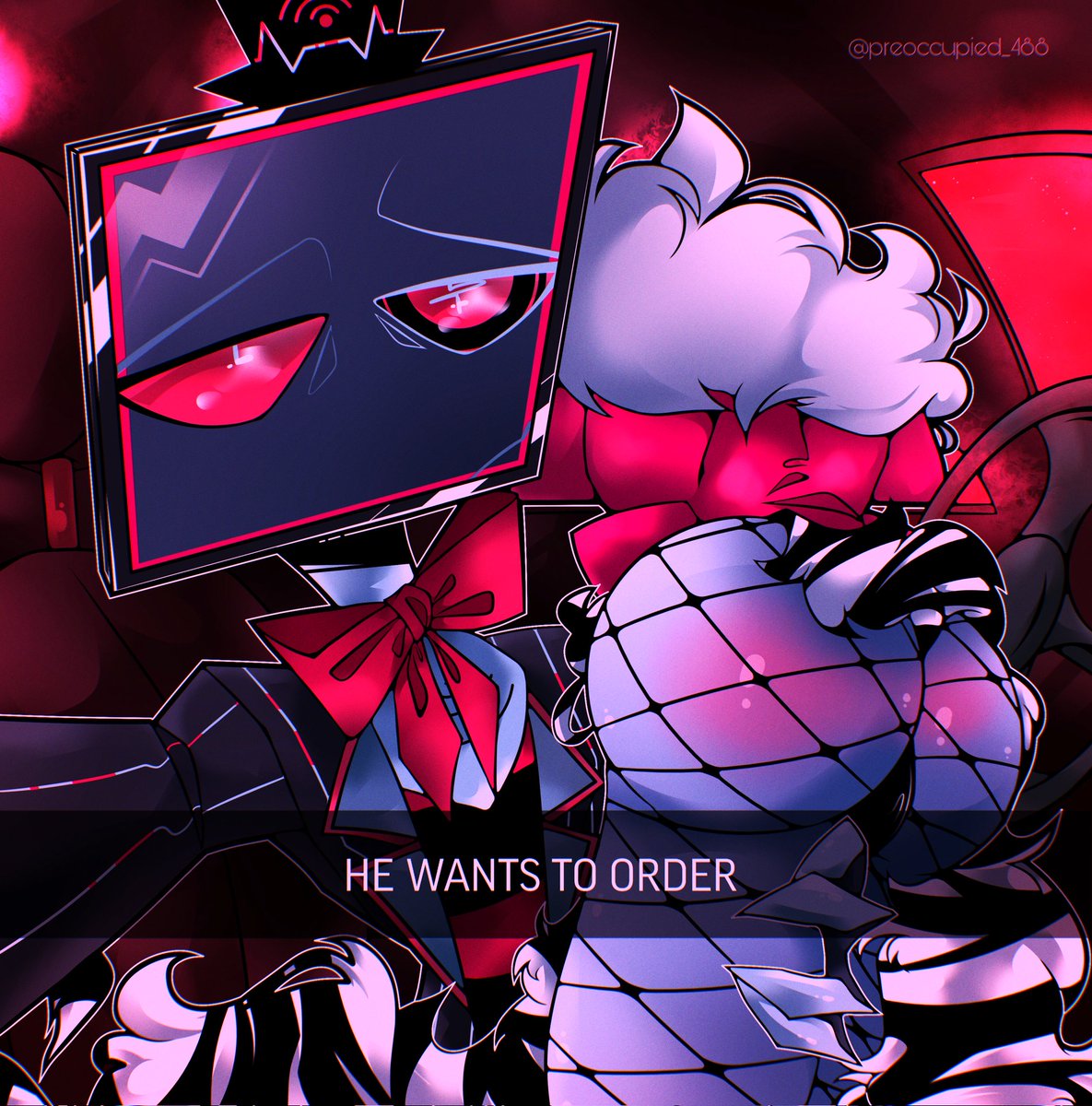 Vox already bought. I couldn't resist this challenge (because drawing Valentino's ass is the meaning of life🦋🖥💙💙). #HazbinHotel #HazbinHotelFanart #HazbinHotelVox #Vox #HazbinHotelValentino #Valentino #VoxVal #StaticMoth