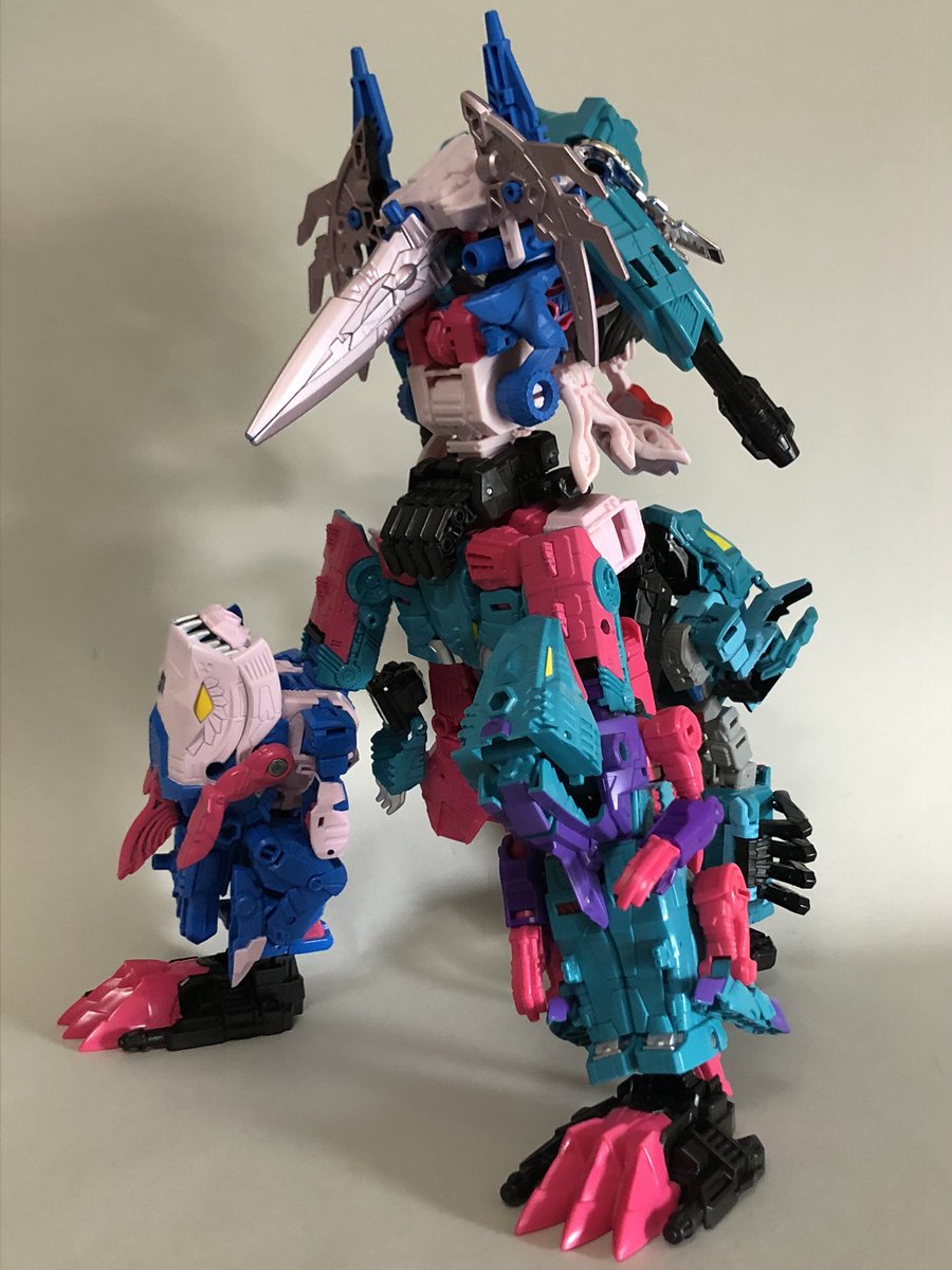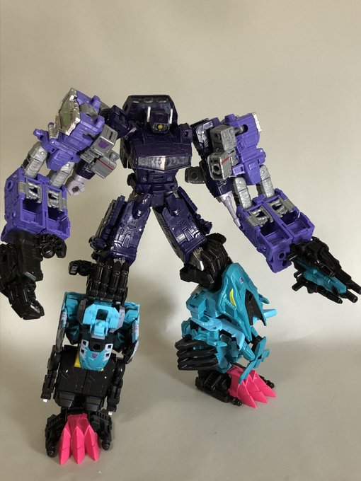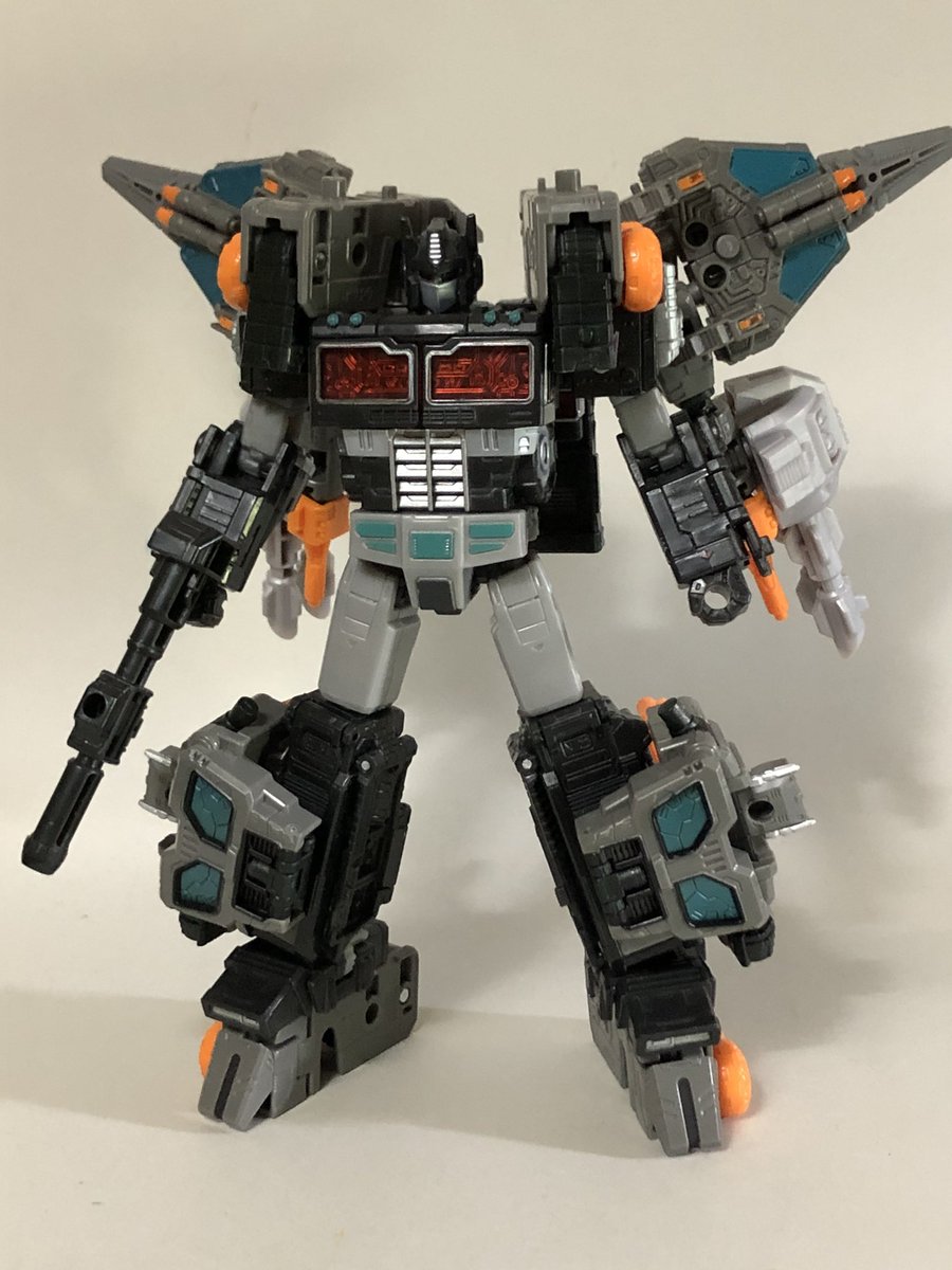 安くなってたネメシスを入手。やりたかったオプティマス 型とデストロン系ウェポナイザーとの合体を早速。 ファストトラック×2で、完成!ジェットウイングネメシス! #トランスフォーマー #TF