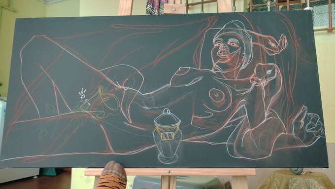 A mimir q tá tarde. Ancestralidade 80x100 Acrílica sobre tela #acrylicpainting #artistsontwitter #blackartist