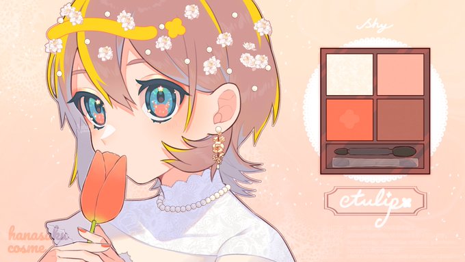 18 104 妄想コスメシリーズ💄 hanasaku cosme「tulip/shy」 オレンジのチューリップの花言葉「照れ屋」🌷 #創作 #イラスト 23/05/19 18:00
