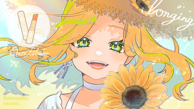 17 84 妄想コスメシリーズ💄 hanasaku cosme「sunflower/longing」 向日葵の花言葉「憧れ」🌻 #創作 #イラスト 23/06/02 18:00
