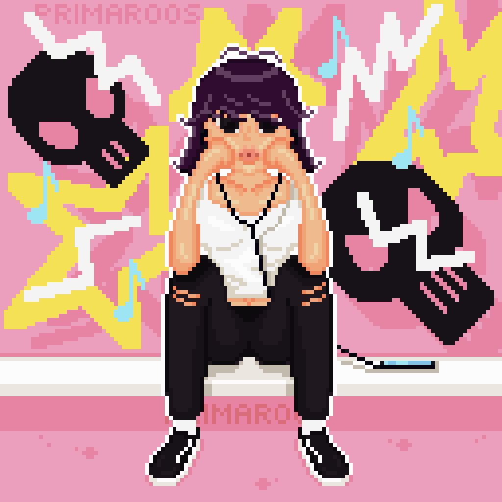 what song do you think she's listening to?? even I have no idea🫤 #pixelart #ドット絵