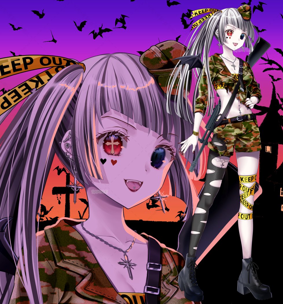 夢魅らず様(@Yumemi_Raz)のハロウィン新衣装をお仕立てさせて頂きました🎃 keepoutテープが天才なデザイン、アシンメトリーな前髪、ダメージタイツなどこだわりが沢山つまった衣装、楽しく描かせて頂きました︎💖 twitter.com/Yumemi_Raz/sta…