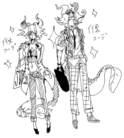 5 12 絵チャで描かせていただいた、ぶらっくたんさん(@nasuta5mamma)のストレイちゃん&ムーンドッグくん 20/04/10 00:09