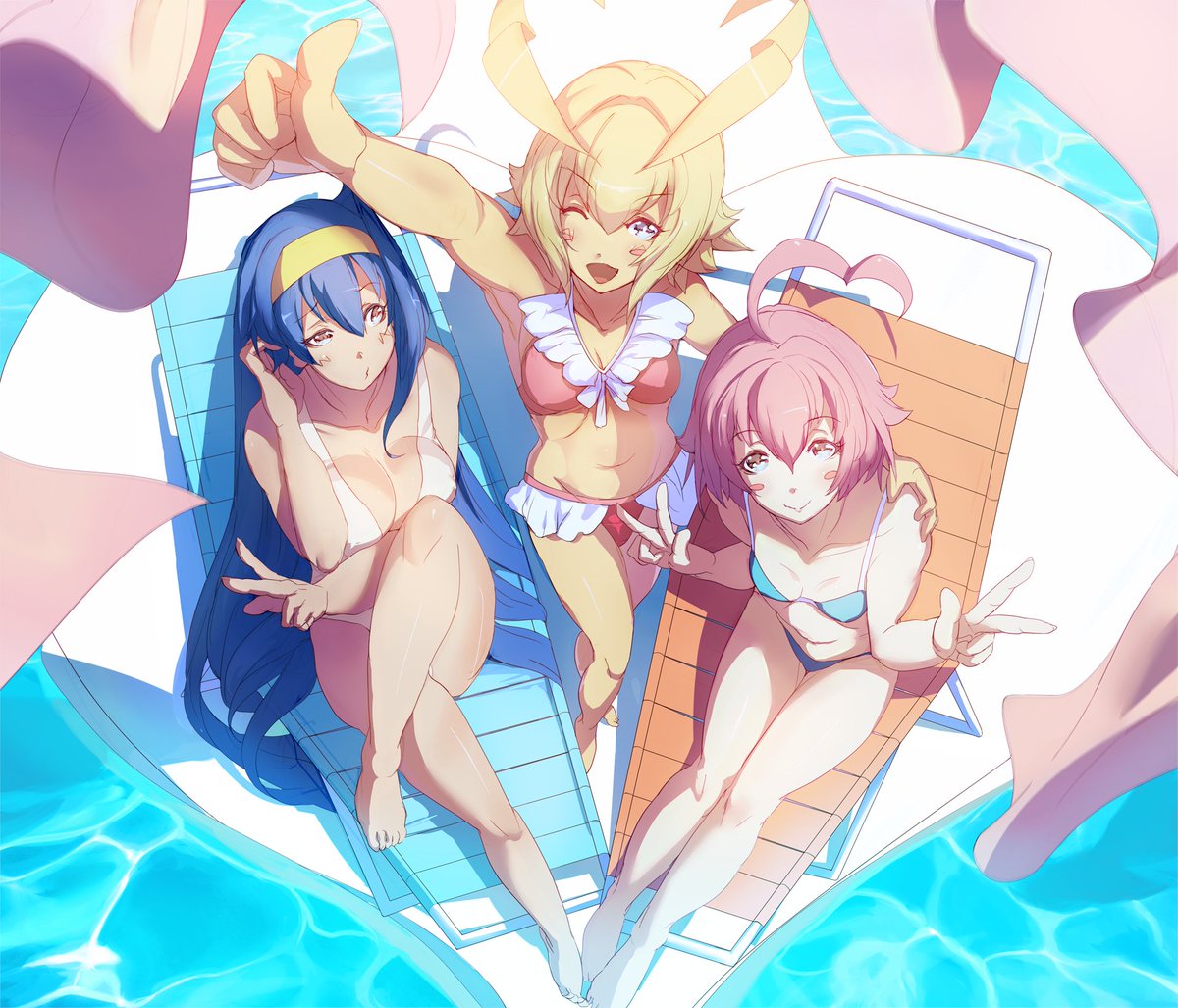 出来ました。 久々のアルカナより。 「Heartthrob」 ほんとは「君に胸キュン」と題をつけたかったのですが。プールでのお三方ですが、それぞれのらしさを 目指したつもりです。#アルカナハートイラスト部