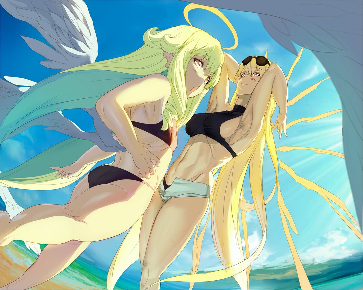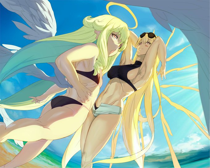 出来ました。アヴァロン姉妹の夏。 「Memories of a Summer Island」 久々のアンジェ親分。翼をブワッと。 昔から好きなインストの題目をいただきました。 あの曲のように爽快なものになってればいいなと。 #アルカナハートイラスト部