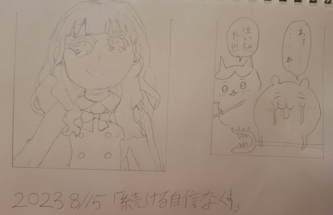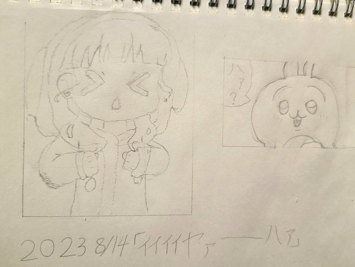 8日目 「日本一かわいいスクールアイドル目指してがんばるよ🧡」 「ハァ?」 ニジガクちいかわは偉大な先人さんがもうやってるんだけどここのシーン再現したいからぽむにはうさぎになってもらった #画力クソザコナメクジなあんかけちゃんが1年間お絵描きしたら画力人並みになるのか