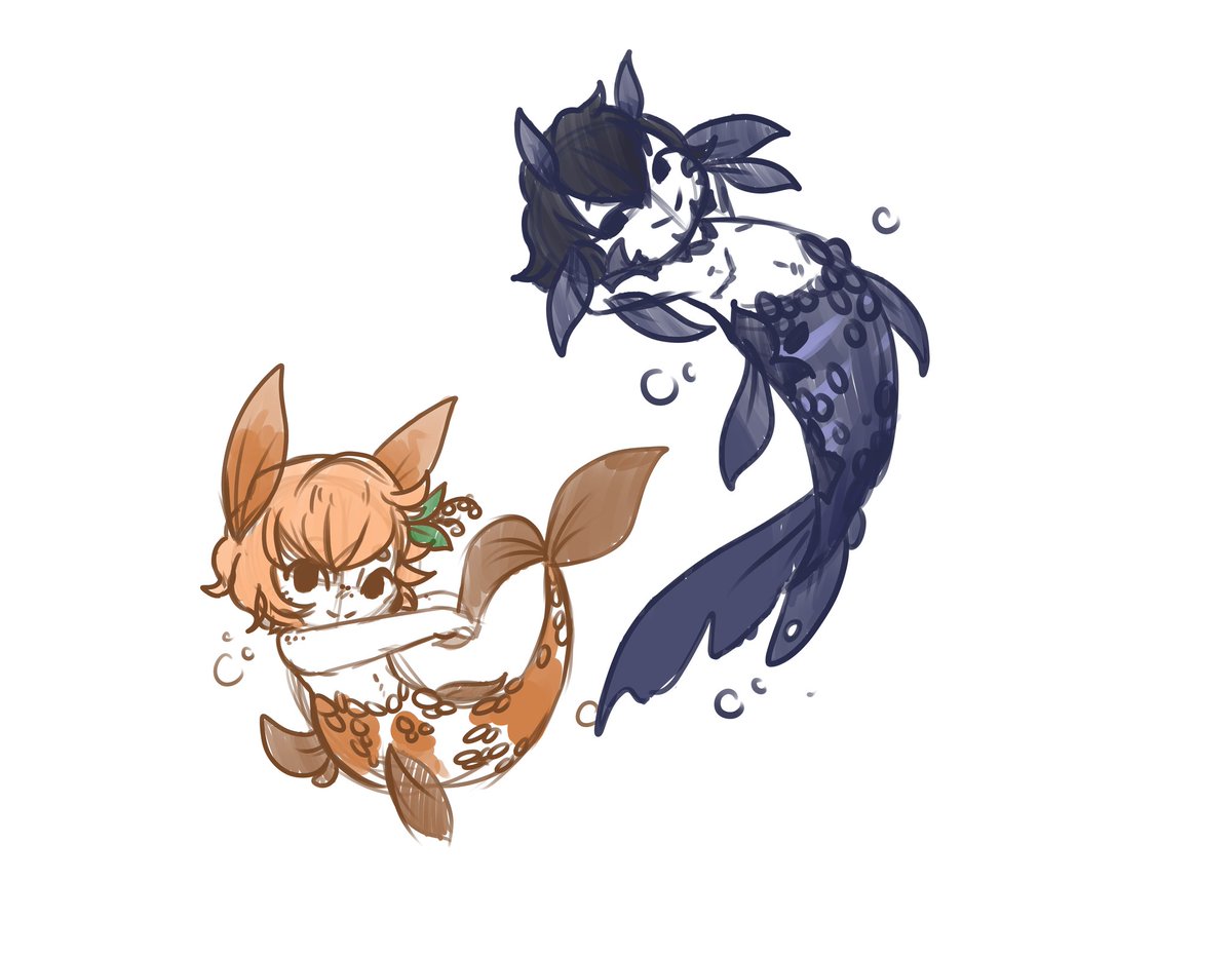 I may not participate in #mermay this year But have Salem and Talon as mermaids (Talon belongs to @minimystel) #drawing #mermay2022 #illustration #FFXIV #doodles #sketch