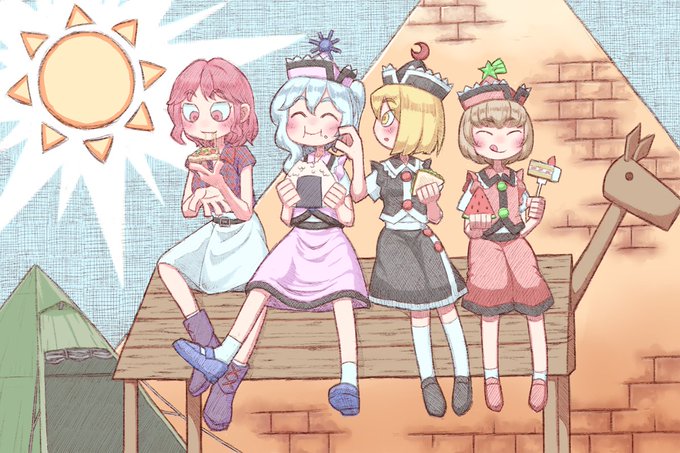 55 209 お絵描き大会お疲れさまでした(お題:飲み物) 最初はこんだけキャラ描くつもりじゃなかったんだけど「何か楽しい方がいいよね!」というその時のノリで妖々夢全員集合になりました うちにも氷精一匹来てくんないかなぁ 23/07/13 22:01