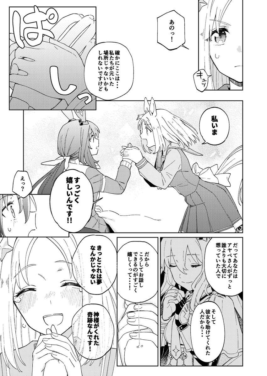 【宣伝】 こちらの合同誌に参加させていただいてます!2ページのショート漫画でトップロードとアヤベさんを描いてます。 他の参加者の方の作品も素敵なものばかりですので、ぜひお手に取っていただけたら嬉しいです! twitter.com/naz_kiss/statu…