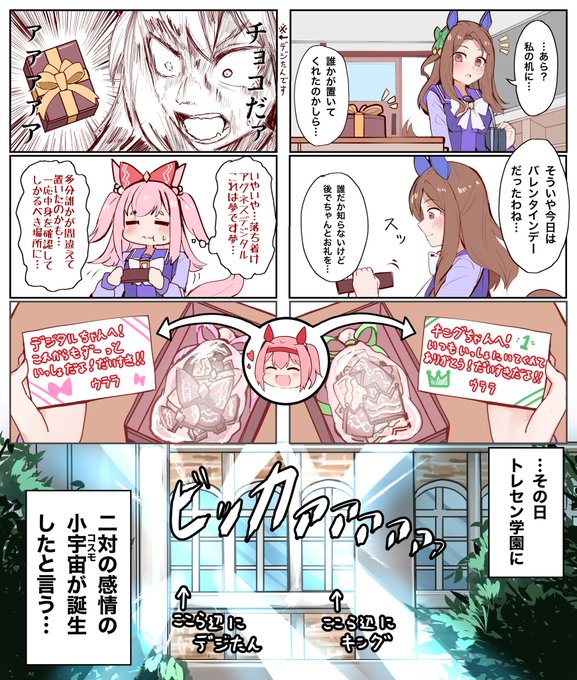2179 8536 バレンタインデーにサプライズを受けるキングとデジたんの漫画🍫 #ウマ娘 23/02/14 18:41