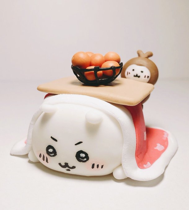 みかんを好きなだけ食べコタツから出ない正月にしたい気持ちを込めて🍊 LINEスタンプのちいかわちゃん粘土で作りました( ⊃ ॑꒳ ॑⊂ ) #ちいかわファンアート #樹脂粘土
