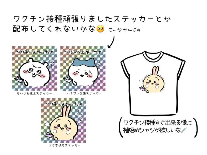 もうすぐ3回目のワクチン接種…前回は高熱と腕の痛みと倦怠感ひどかったからめっちゃ憂鬱(ᐡ o̴̶̷᷄ ̫ o̴̶̷̥᷅ ᐡ) ワクチン接種済のノベルティ配布して接種しやすいシャツ販売して副作用なくて平和な世界になって欲しい₍ᐢˊo̴̶̷̤ ̫ o̴̶̷̤ˋᐢ₎