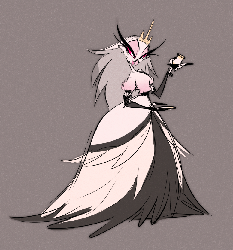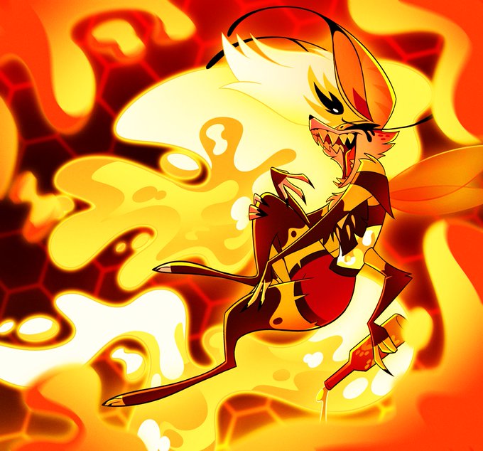 👑🐝 She's the original "What do you have in your mouth!?!" 🐝👑 My fave Helluva character is finally out ;~; I helped design her hair and tail and did all her palette changes with Viv. The comp and FX teams will never forgive me and that's okay, I understand 🫠 #HelluvaBoss