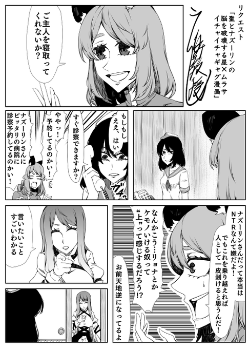 「聖とナズーリンの脳を破壊する星×村紗イチャイチャギャグ漫画」 リクエストありがとうございました! #東方Project #東方