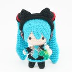 みさきちさん(@amidoll_planet )のリボンの騎士ミクさんをお迎えしました!可愛い╰(*´︶`*)╯黒ネコみみのカチューシャもよく似合っている。桜ミクさん用のネギバッグを用意してくれてありがとうございます。全員ネギバッグ持っている、本当に良かった!(*´꒳`*) #あみぐるみ #あみプラ