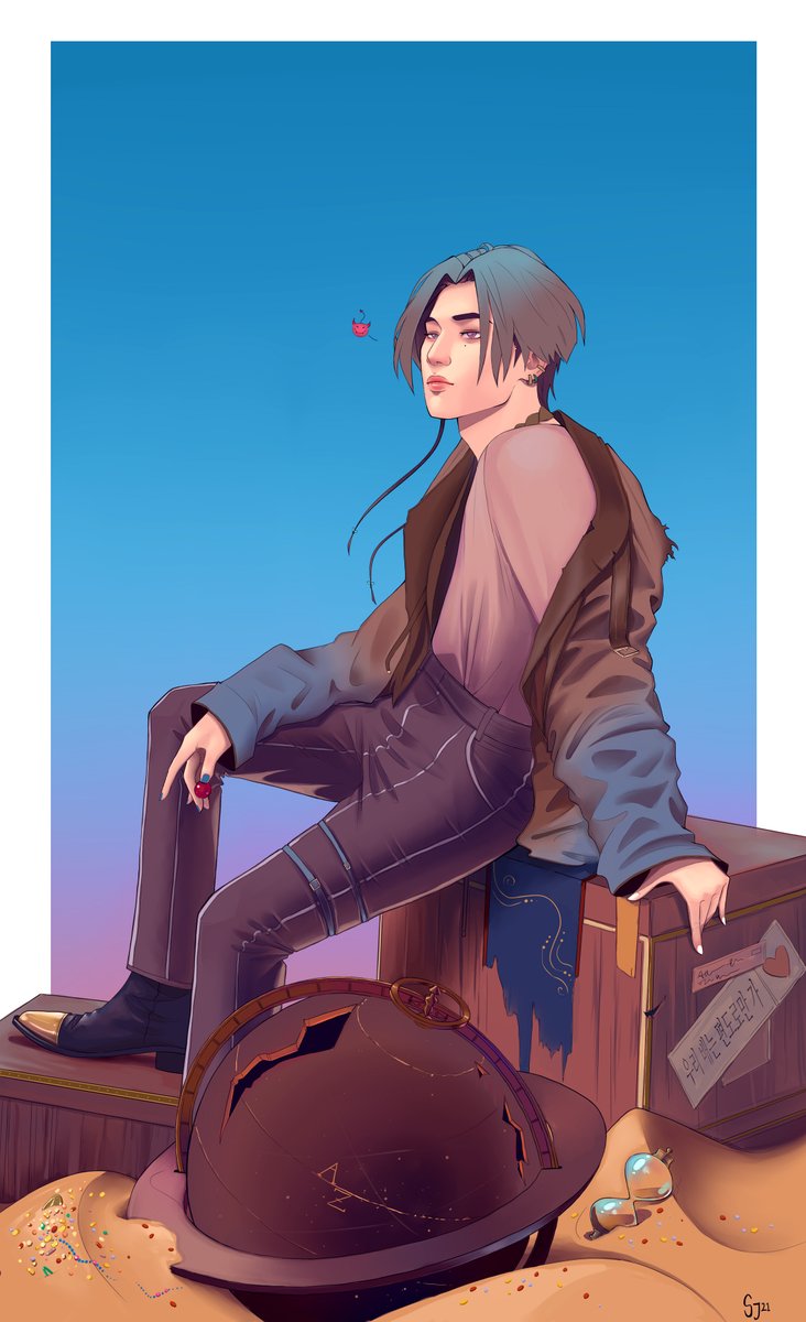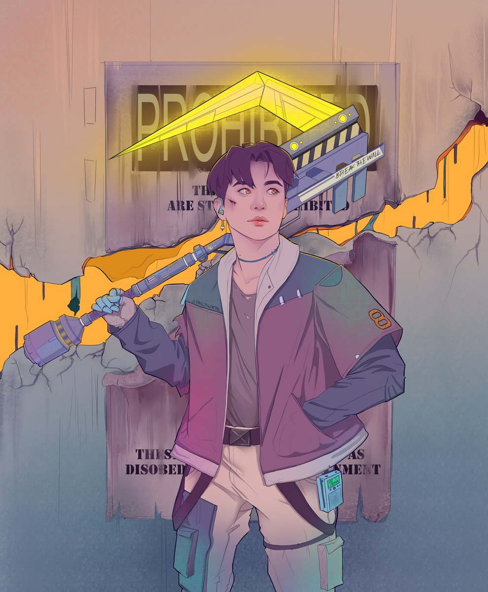 wanted to give jongho a cyberpunk/scifi scythe⚡ #ATEEZfanart #JONGHO (sorry i've been so inactive the past months or so, i got sick and with it came chronic headaches and neckpain but im getting better and can finally draw again😭)