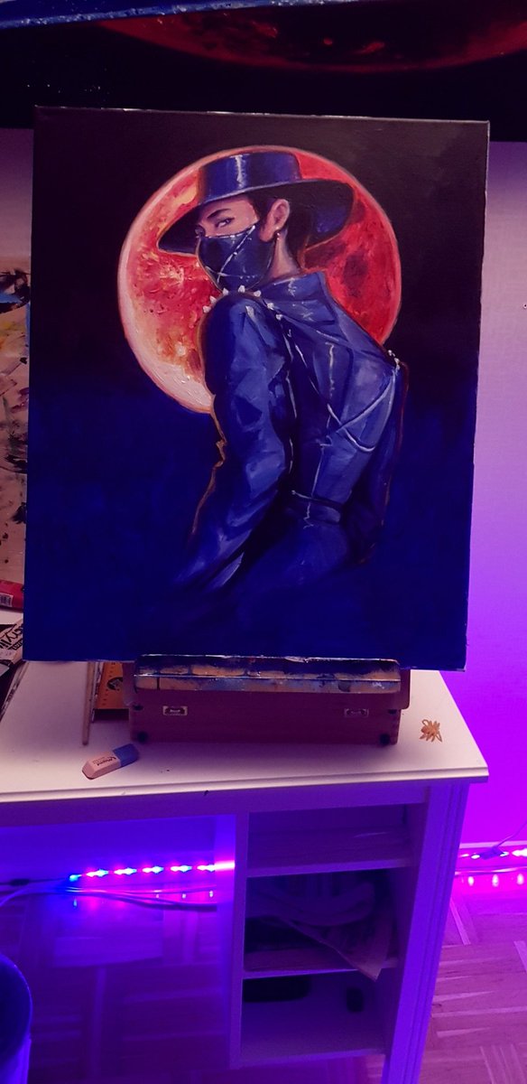 Been working on this for a while and its finally done!! (i think, i might add some small details idk) 100x80cm acrylic, biggest canvas i ever worked on👌🔥 #ATEEZfanart #HONGJOONG