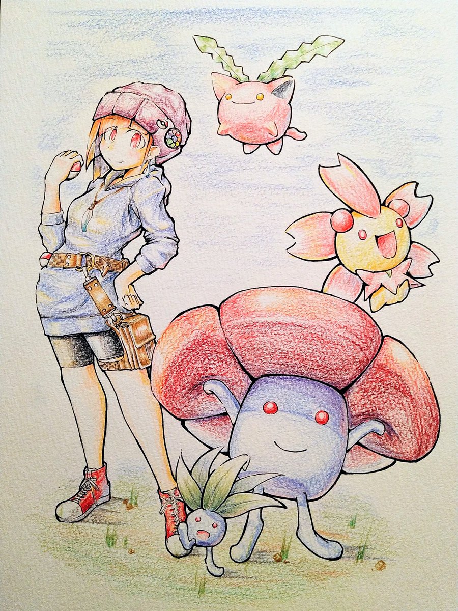 2 21 好きなくさポケみんな同じ顔やった(°v°) #ラフレシア #ナゾノクサ #ハネッコ #チェリム #アナログイラスト #色鉛筆 21/06/01 00:52