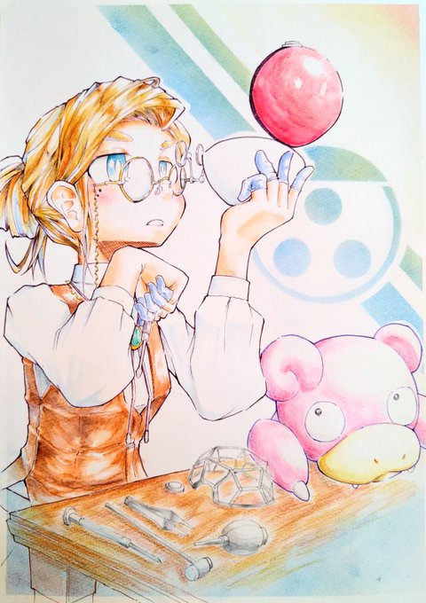 ヒワダタウン出身のモンスターボール修理技能士 #ポケモンイラスト #ヤドン #水彩色鉛筆