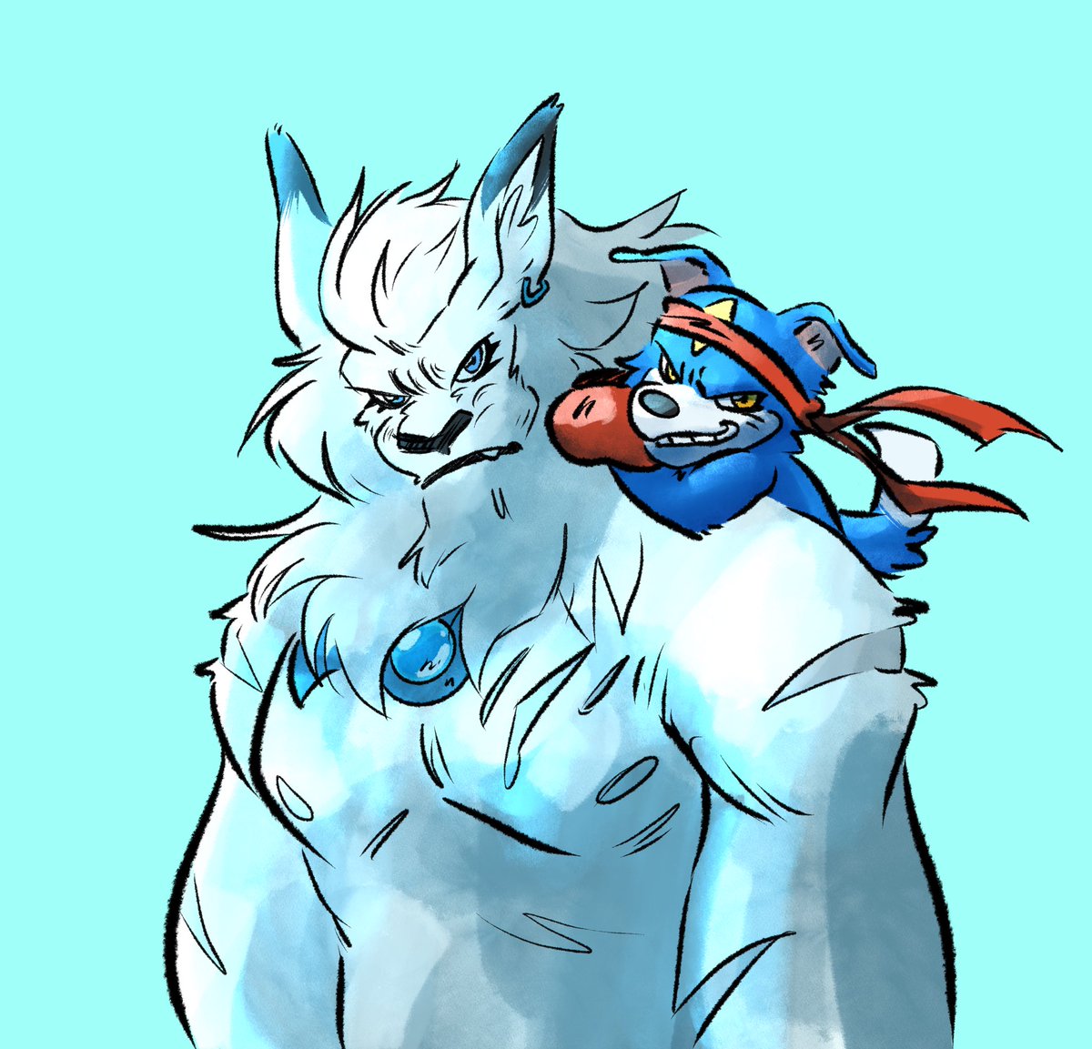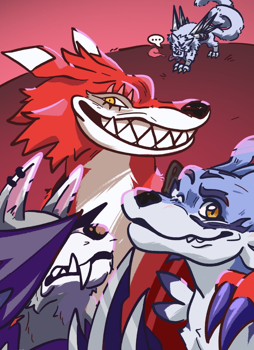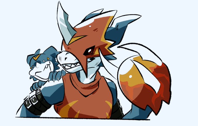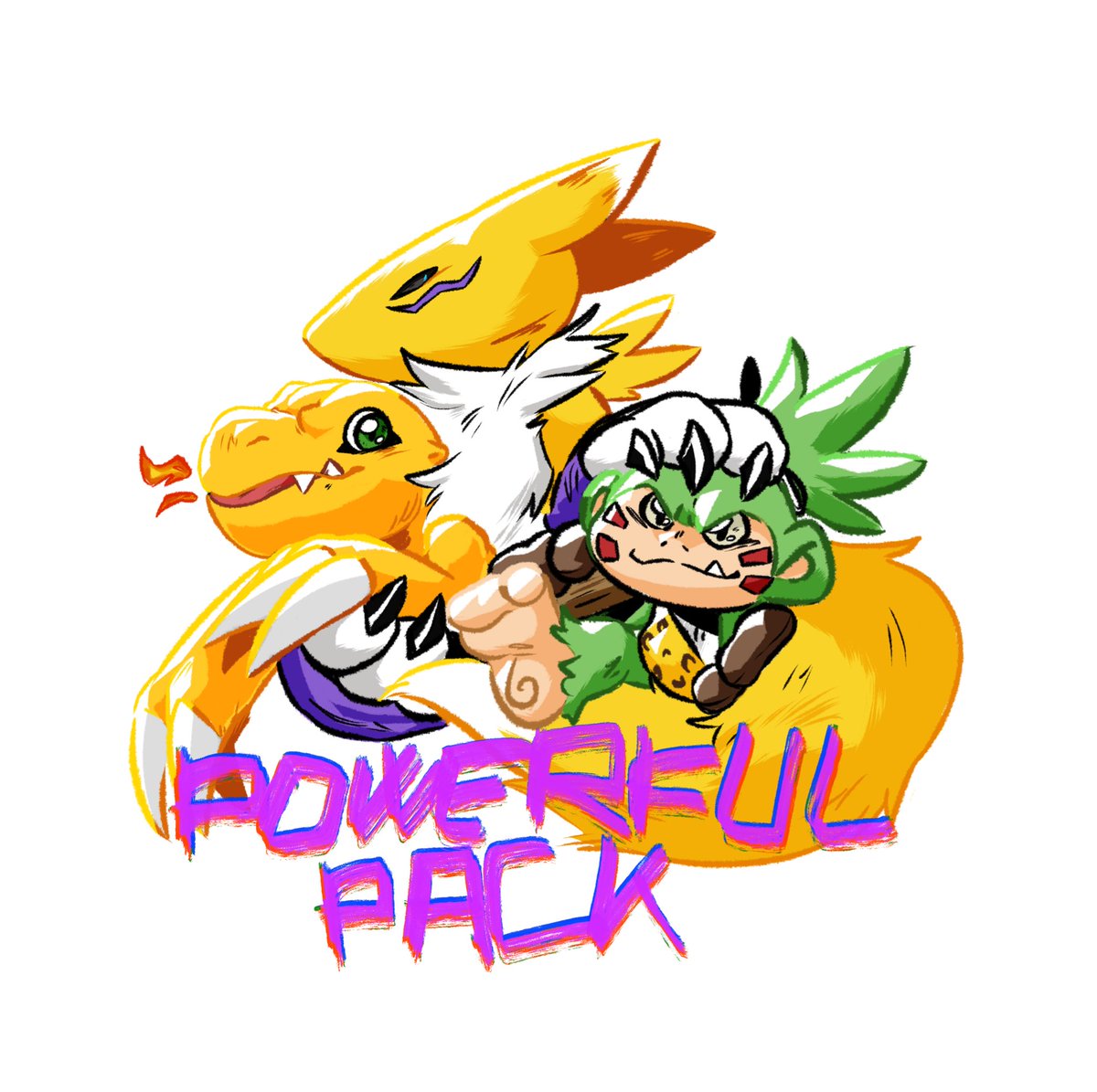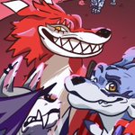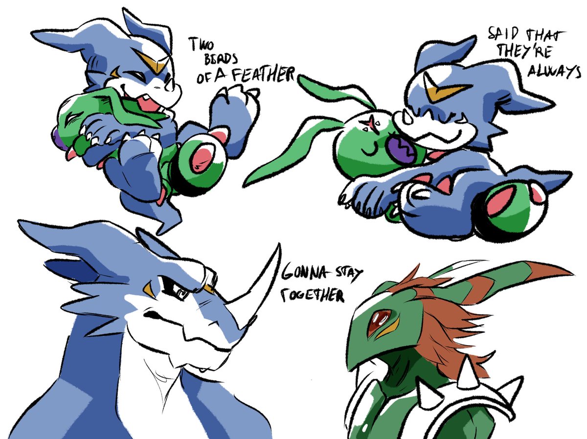 Forgot to post this! Someone really liked my old drawing of them, Punk and Lobo. They’re my partners on DMO and decided to make them full on characters. So I decided to draw them again! Panjyamon and Gaomon, my pals.