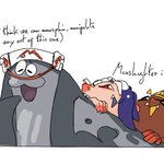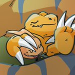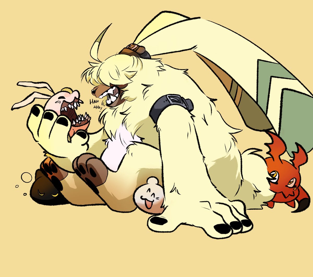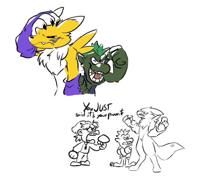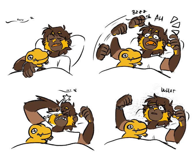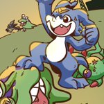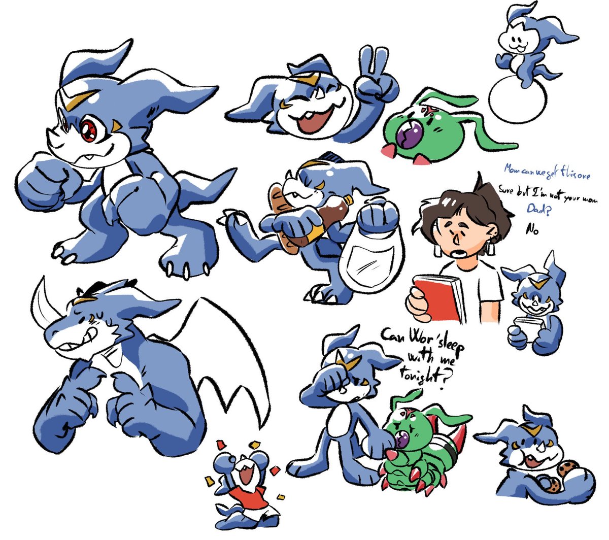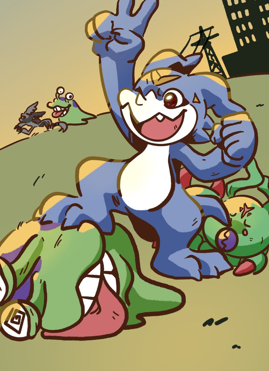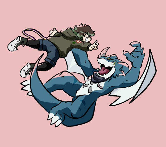Forgot to post this! Someone really liked my old drawing of them, Punk and Lobo. They’re my partners on DMO and decided to make them full on characters. So I decided to draw them again! Panjyamon and Gaomon, my pals.