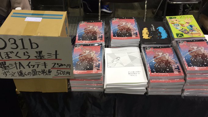 本日 #COMITIA144 O31b ぼくら墨汁 お品書き 『墨汁Aイッテキ!2023五月号 』2500円 モノクロとカラーの4冊セット300ページ超えのボリューム! 『ずっと遠くの国で戦争が始まった一年のこと』500円 さかなかなすか入魂の一冊! 俺のオマケのコピー誌もありますよ。