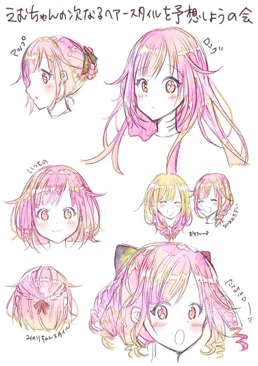 主がただ色んな髪型のえむちゃんを描きたっただけのrkgk #prsk_FA #鳳えむ