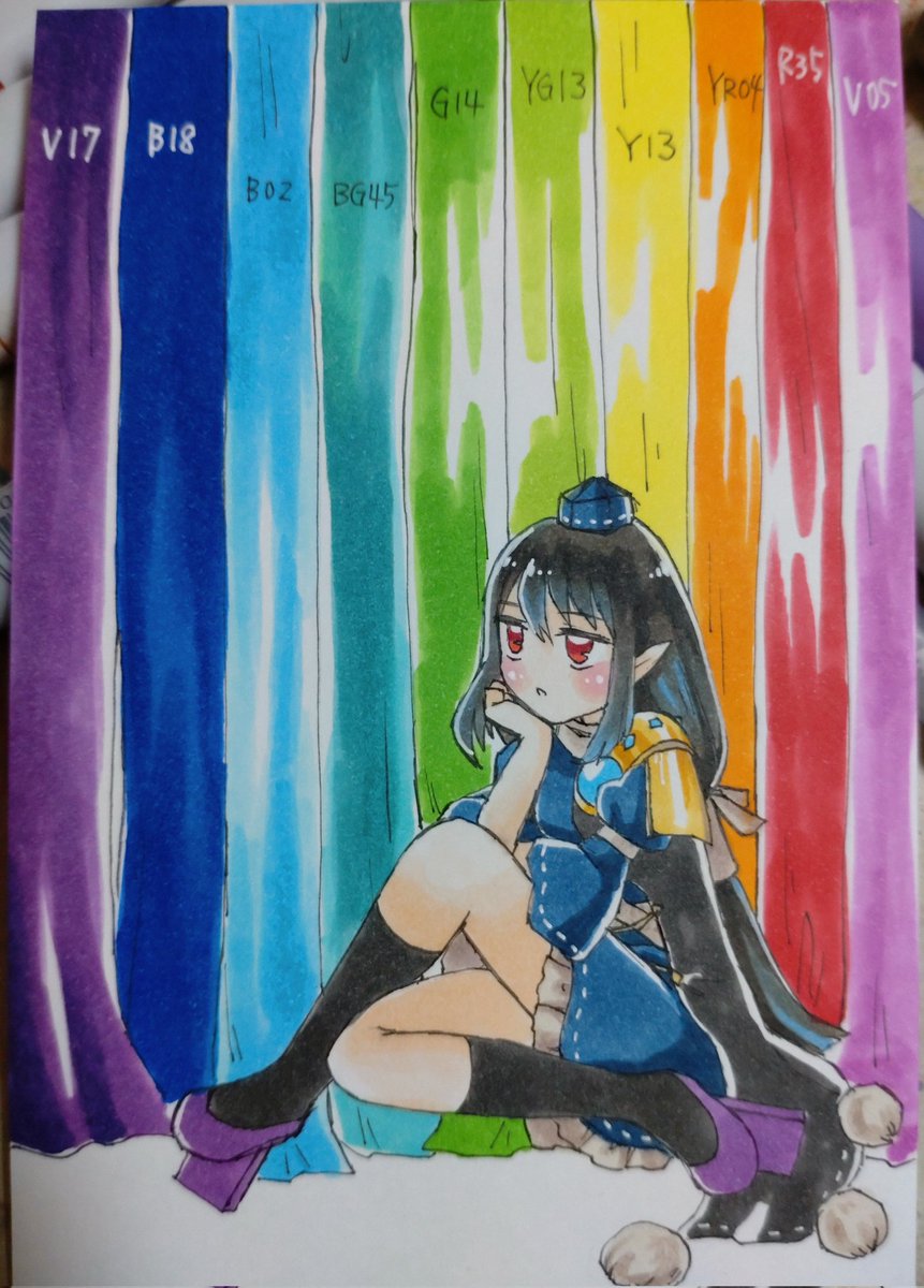 8/13 #C102 新刊「ヴァカンスの色彩」サンプル 虹龍洞キャラが全員いるアナログイラスト集です コピック作画のイラストや制作メモ ワンドロで制作した作品 イベントで頒布した色紙などを掲載してます B5横型/30P/表紙本文FC 【2日目東3シ02a Happy Drop】にて頒布します よろしくお願いいたします