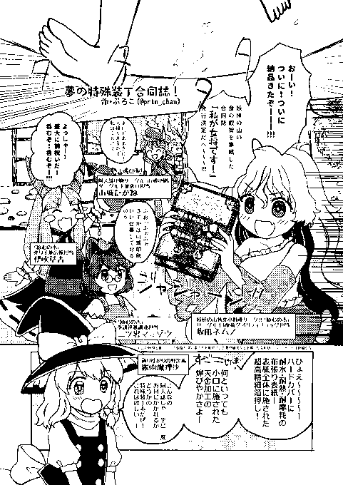 20 45 同人誌即売会幻想入り合同『あの賑やかな即売会は今ここに』に漫画を4p寄稿させていただきました 8/13 #C102 【東3ホールシ02b ガノデルマ】 にて頒布です 続きはぜひお手に取ってお読みくださいませ~ 小料理サークル「ねむの木」が特殊装丁合同本を発行するお話です よろしくお願いいたします 23/08/05 21:03