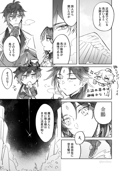 131 652 世間話や冗談(冗談ではない)を言い合えるくらいの仲になった2人前提です +1.2h お題:星、鳴き鳥 #鍾魈ワンドロワンライ #zx1d1w 21/08/15 01:12