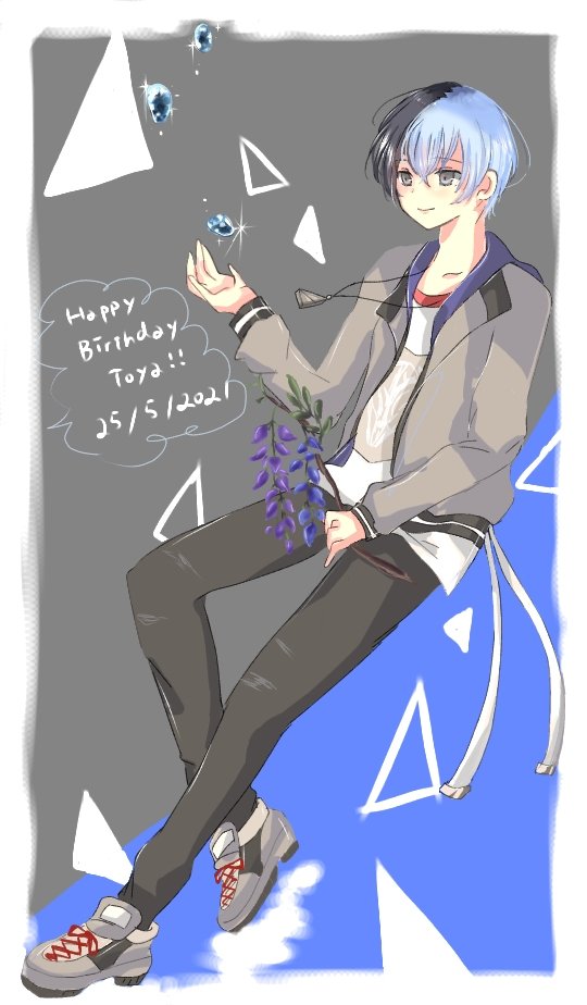 とやくんお誕生日おめでとうー!! 穏やかに3人を支えるところ、カッコよくて大好きです🤗 誕生石:青琥珀(静かに燃える心) 誕生花:藤(優しさ、決して離れない) #青柳冬弥誕生祭2021 #prsk_fa