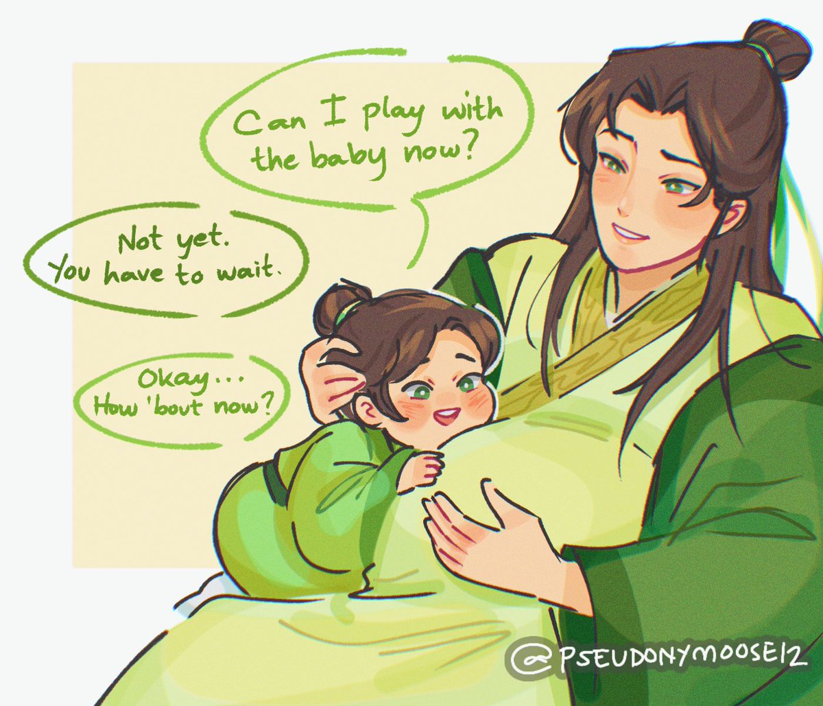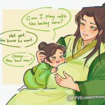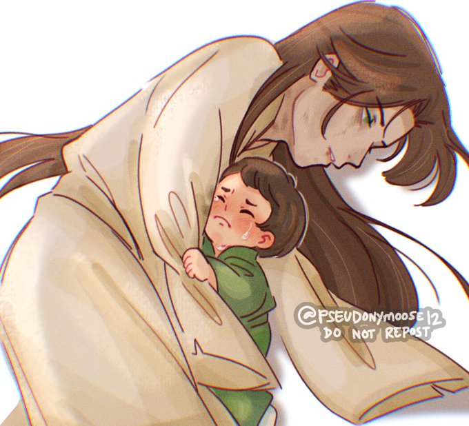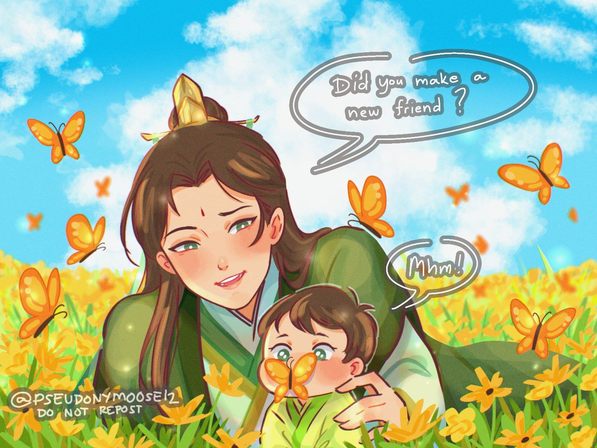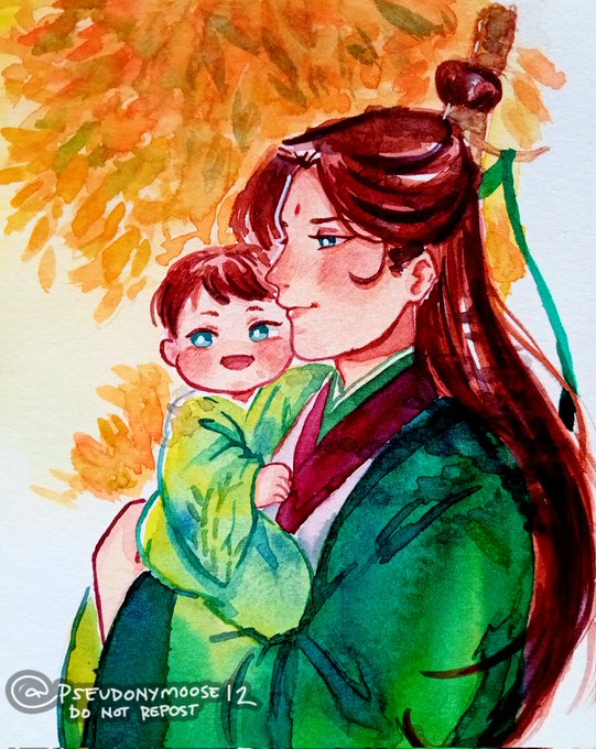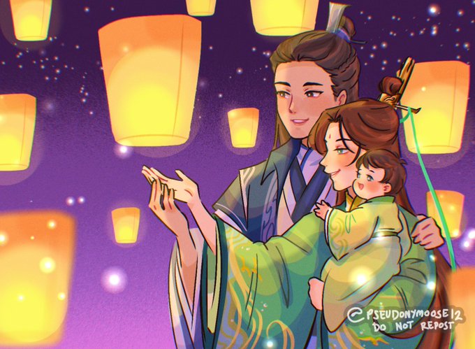 #QijiuWeek2022 day 1 #svsss The sun had already made it's slow descent down the horizon. Warm hues had blossomed vibrantly in the sky. Yue Qingyuan stood in front of the bamboo house with his son in his arms, patiently waiting.